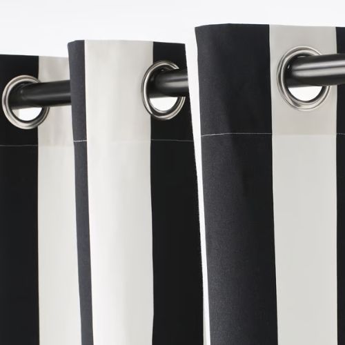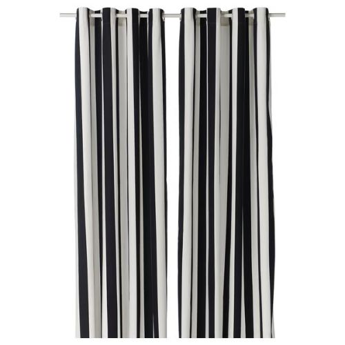 SLANHOSTMAL CURTAINS with graphic black/white stripes create an eye-catching statement. Eyelets allow curtains to open/close with ease and the rich cotton fabric lets in light while giving privacy.